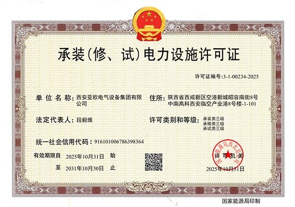 - 關(guān)于我們 - 資質(zhì)榮譽 - 亞歐-承裝修試 證書